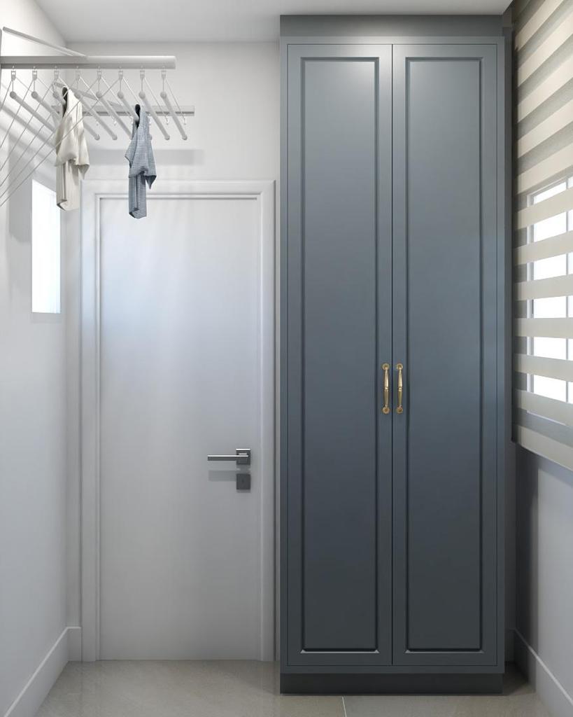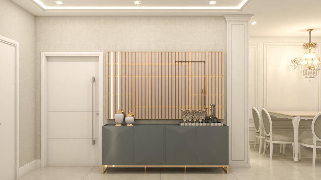 Esse apartamento foi feito especialmente para uma cliente que não dispensa itens sofisticados e muitos detalhes na decoração. Cheio de personalidade e super elegante, foi planejada uma cozinha toda em tom azul, trazendo um toque moderno pro ambiente.
