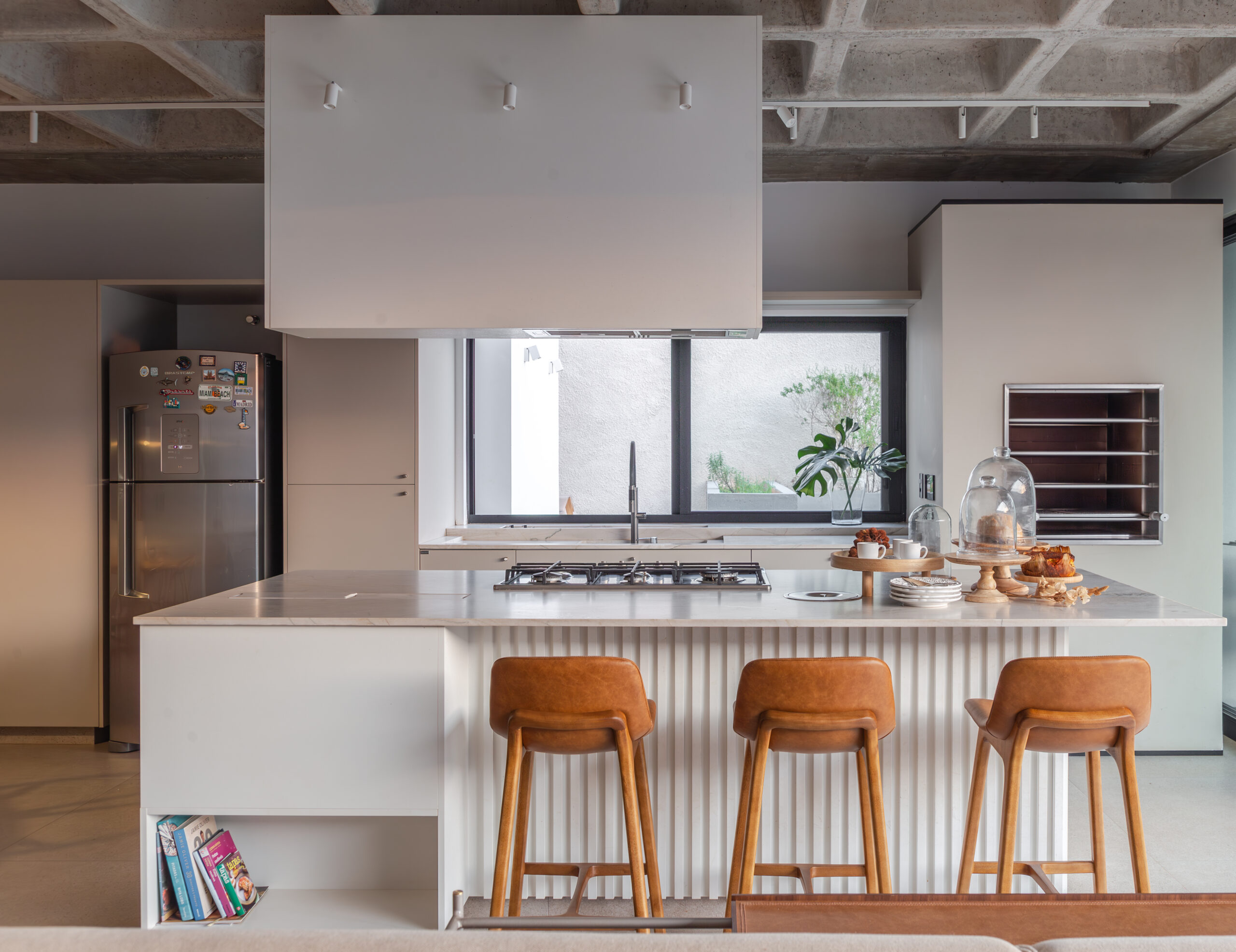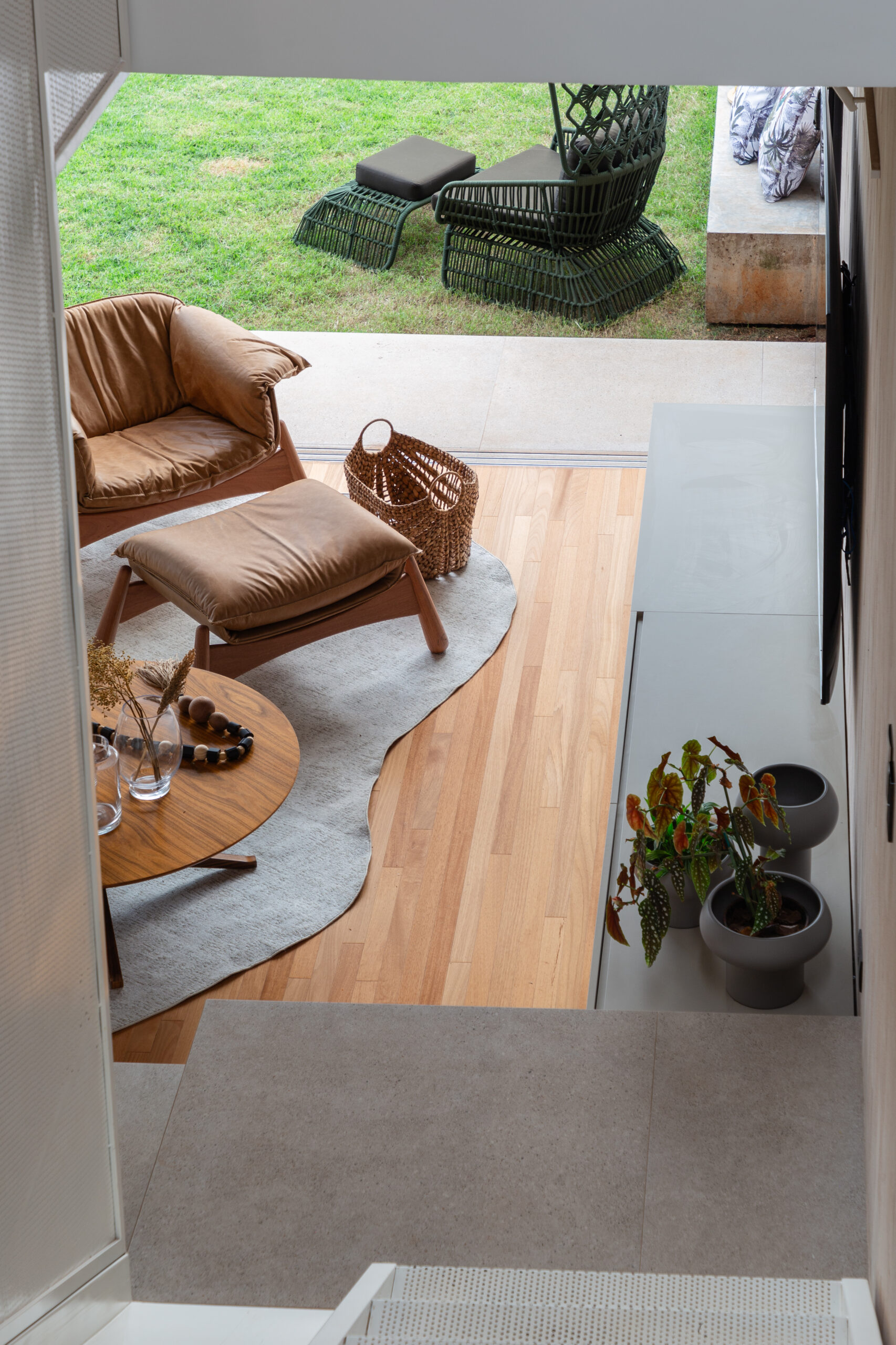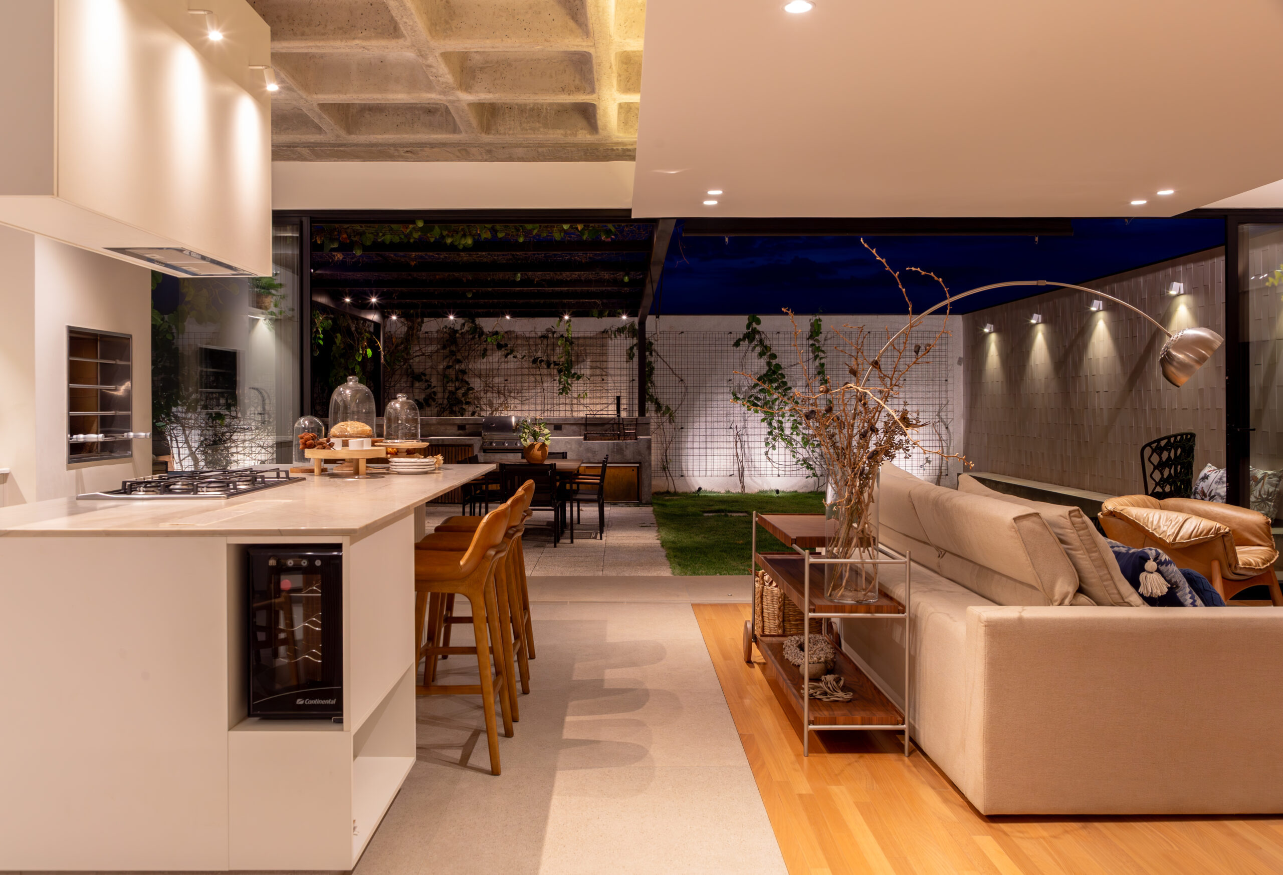E como o próprio nome diz, ela foi projetada a partir do QUINTAL. Essa era a prioridade dos moradores, ter uma área externa gramada, com churrasqueira ao ar livre, piscina e horta, tudo integrado.